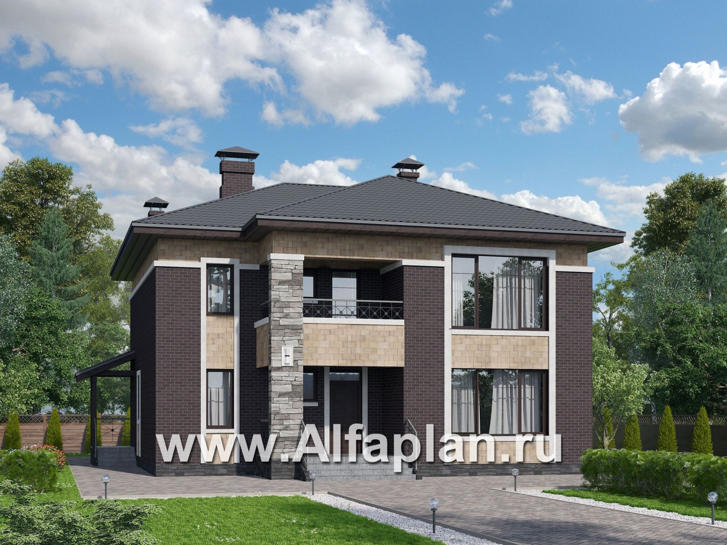 Элегантный и стильный коттедж по проекту "Мотив"  станет украшением вашего земельного участка. Стены коттеджа возводятся из пустотелого кирпича либо газобетонных блоков. Проекты коттеджей из газобетона отличаются отличной тепло- и шумоизоляцией. Снаружи дом облицован лицевым кирпичом коричневого цвета. Для украшения фасада используются вставки из декоративного камня.