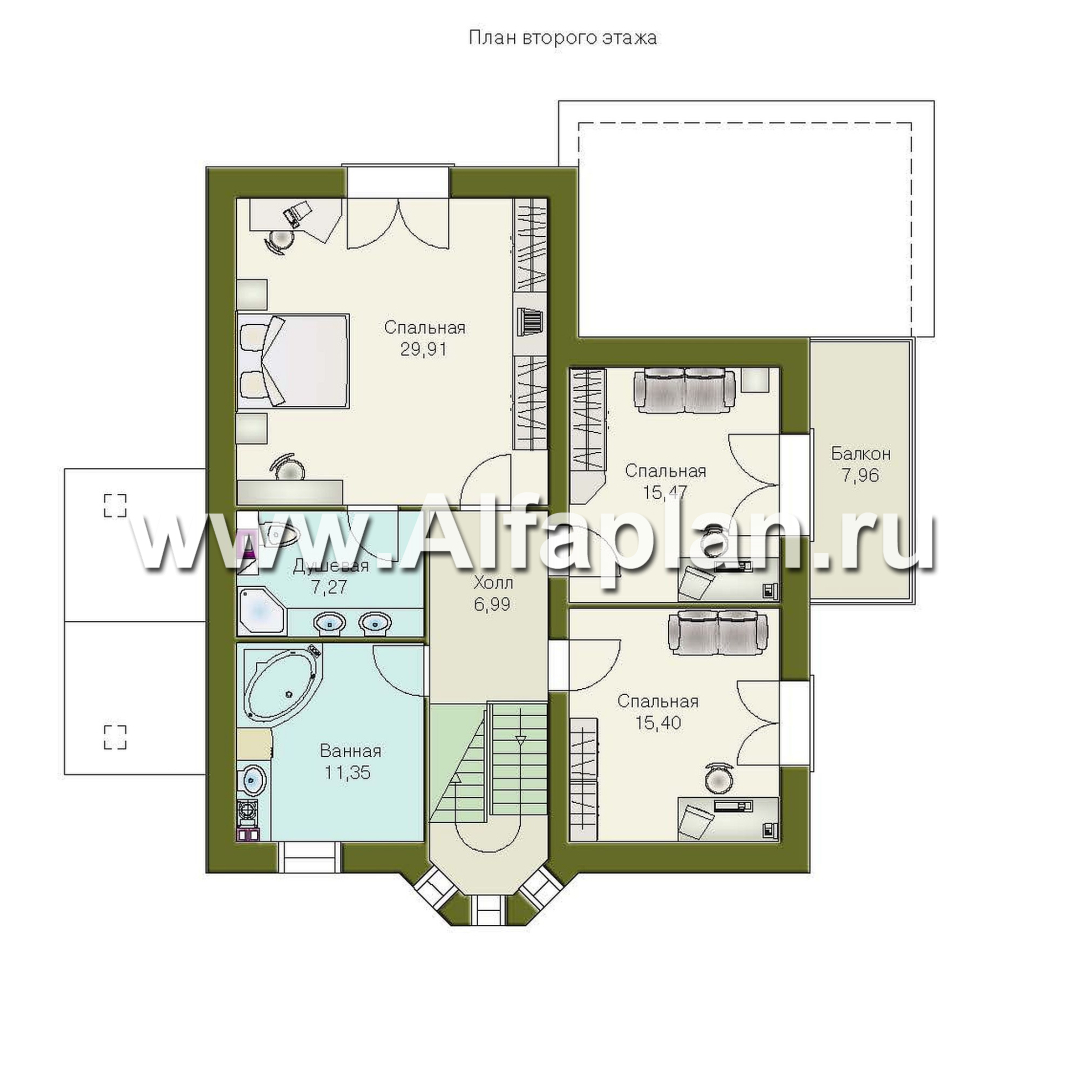 Приятный бонус – в этом доме предусмотрен балкон, площадь которого составляет чуть менее 8 м2. Также архитекторы создали стильный эркер – через его три окна на лестницу падает естественный свет. Эти и другие преимущества «Лавьери+» оценят заказчики, которые ценят в жилье не только удобство и функциональность, но и эстетику.
