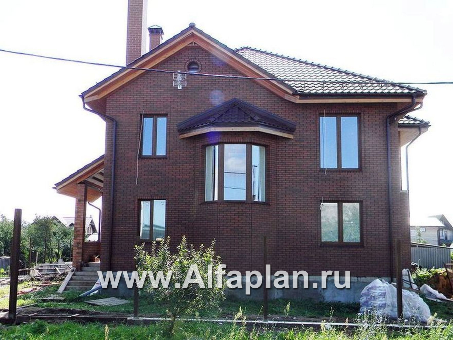 Этот проект удачен не только с точки зрения красоты и функциональности. Его сильная сторона – в надежном монолитном фундаменте, прочных кирпичных или газобетонных (на выбор) наружных стенах и в долговечной битумной черепице. Наружные стены декорируются лицевым кирпичом или деревянной вагонкой в зависимости от пожеланий заказчика. Цокольная часть фасада отделана искусственным камнем.