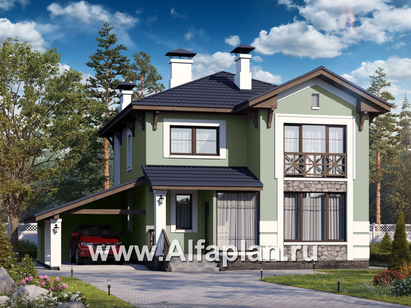 «Смарт» - проект дувухэтажного дома из газобетоа, план с 3-мы спальнями и с навесом на 1 авто