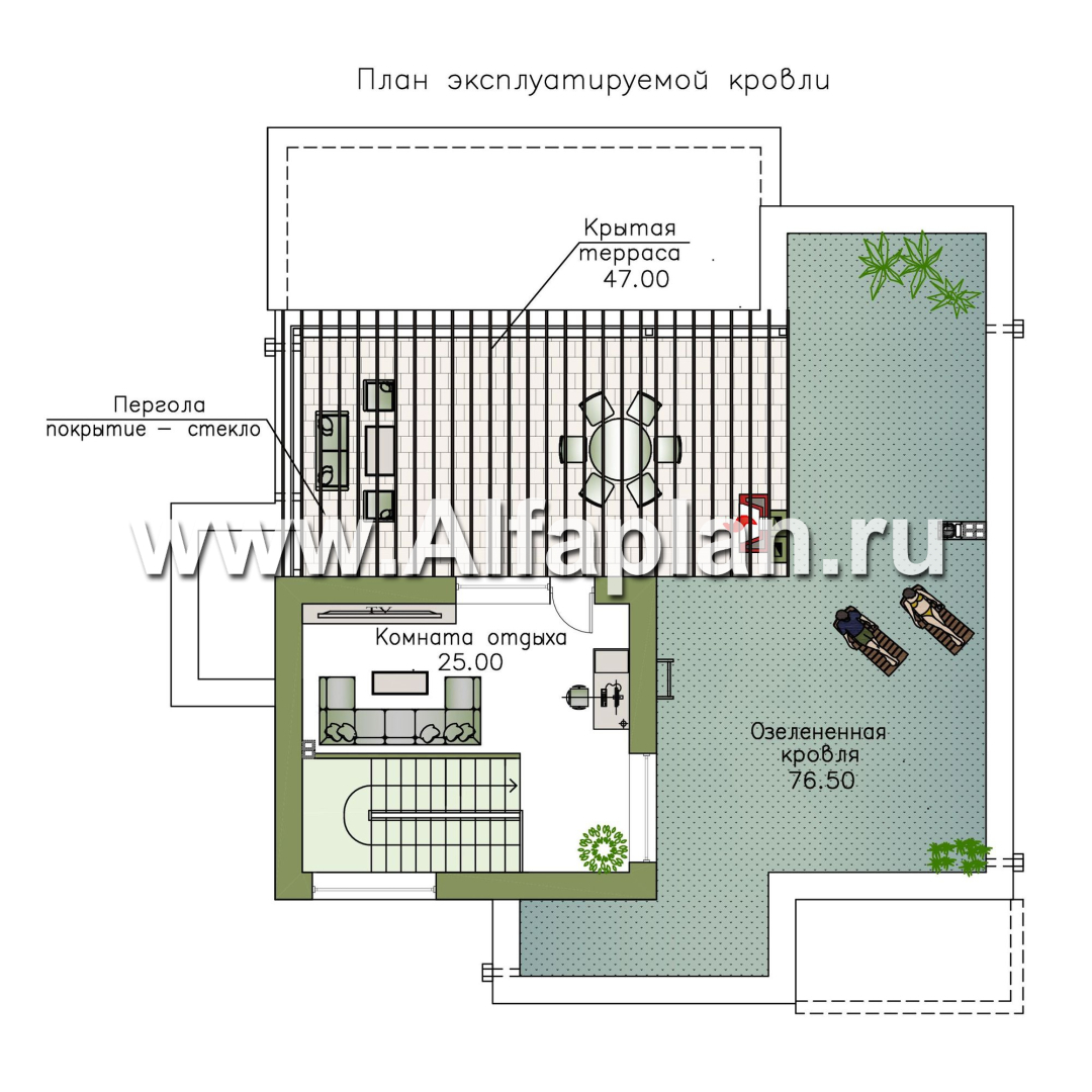 « Альстер» — проект двухэтажного дома в стиле хай-тек, элитая вилла, с эксплуатируемой кровлей