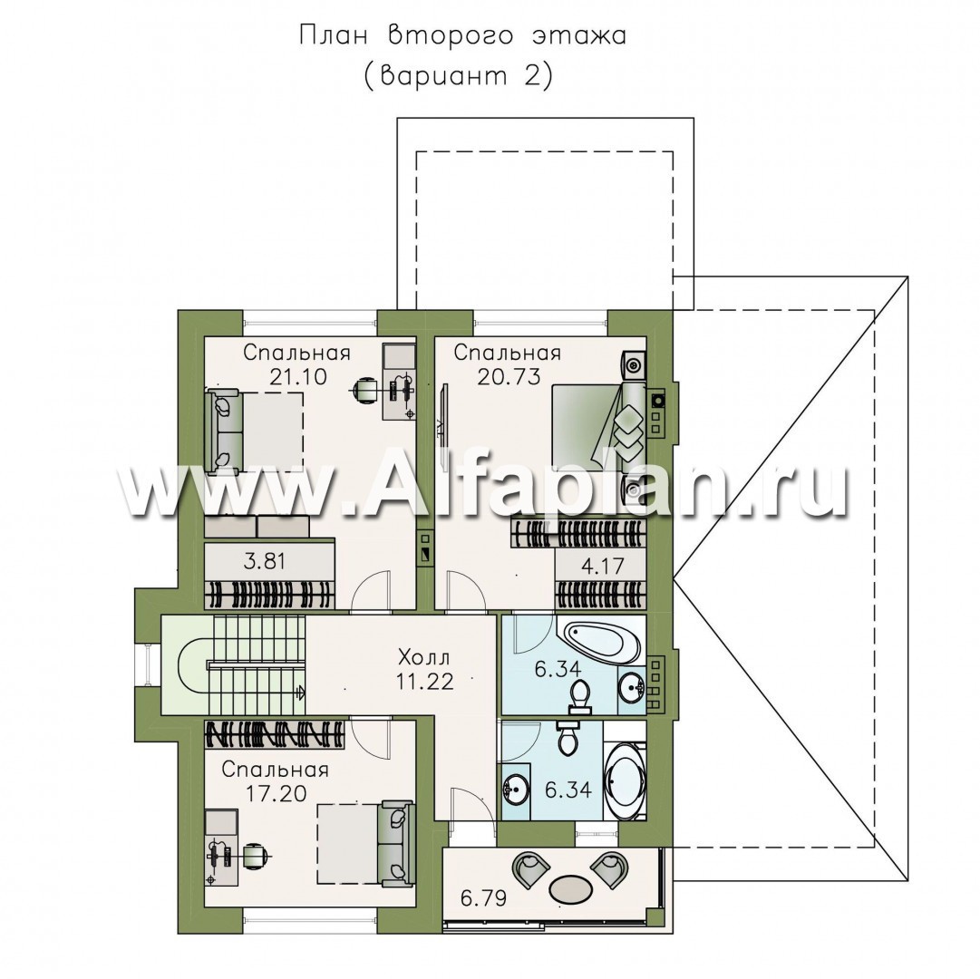 Второй этаж больше предназначен для собственников представленного дома – здесь расположены три просторных спальни, имеется небольшой холл, ванная комната, совмещенная с санузлом и душевой кабинкой.