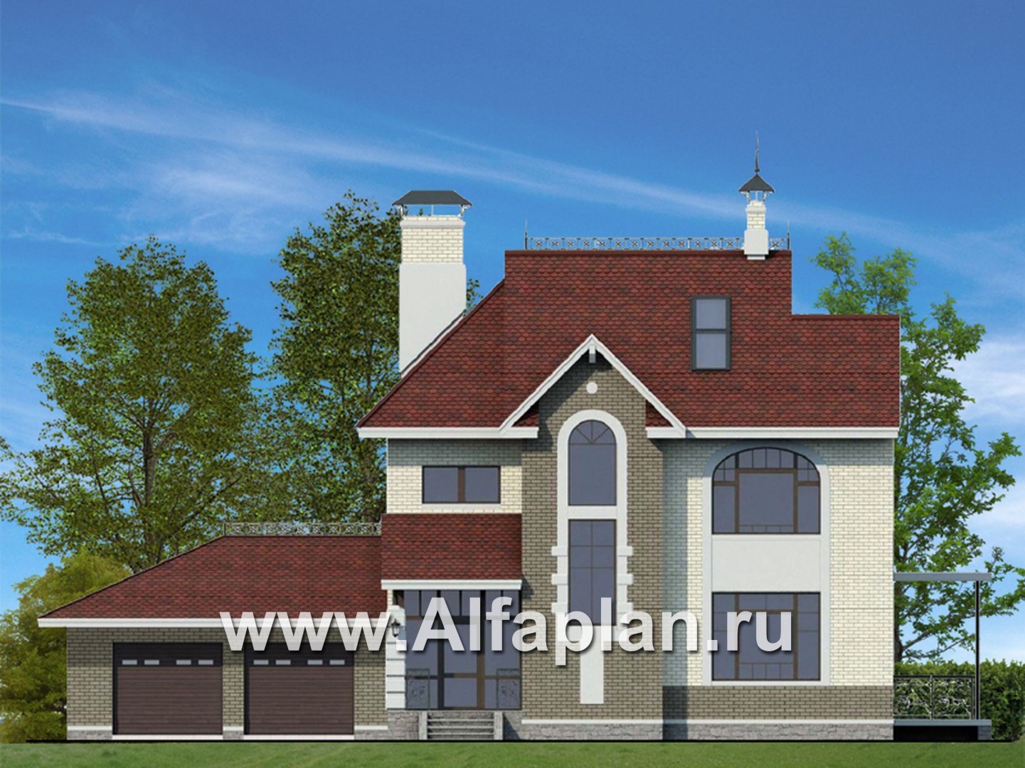 95E-S «Дипломат Плюс» - проект двухэтажного дома из газобетона, с бильярдной в мансарде, с гаражом на 2 авто