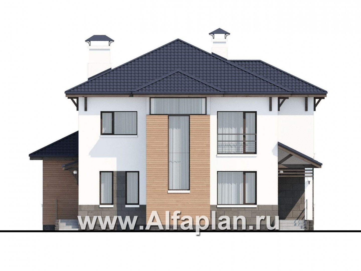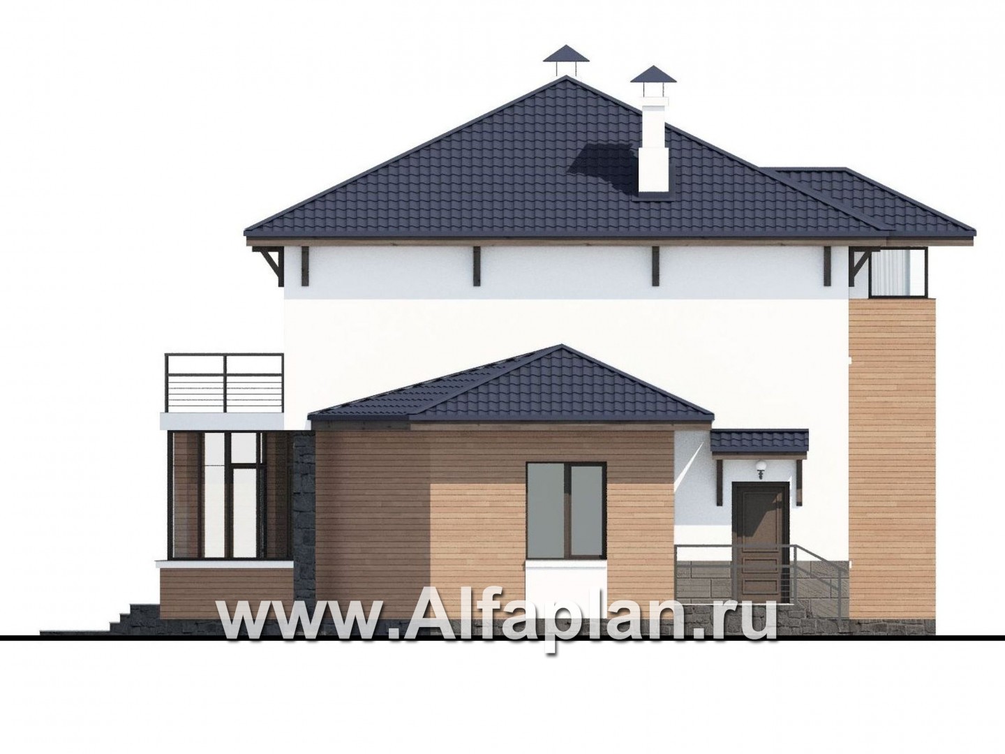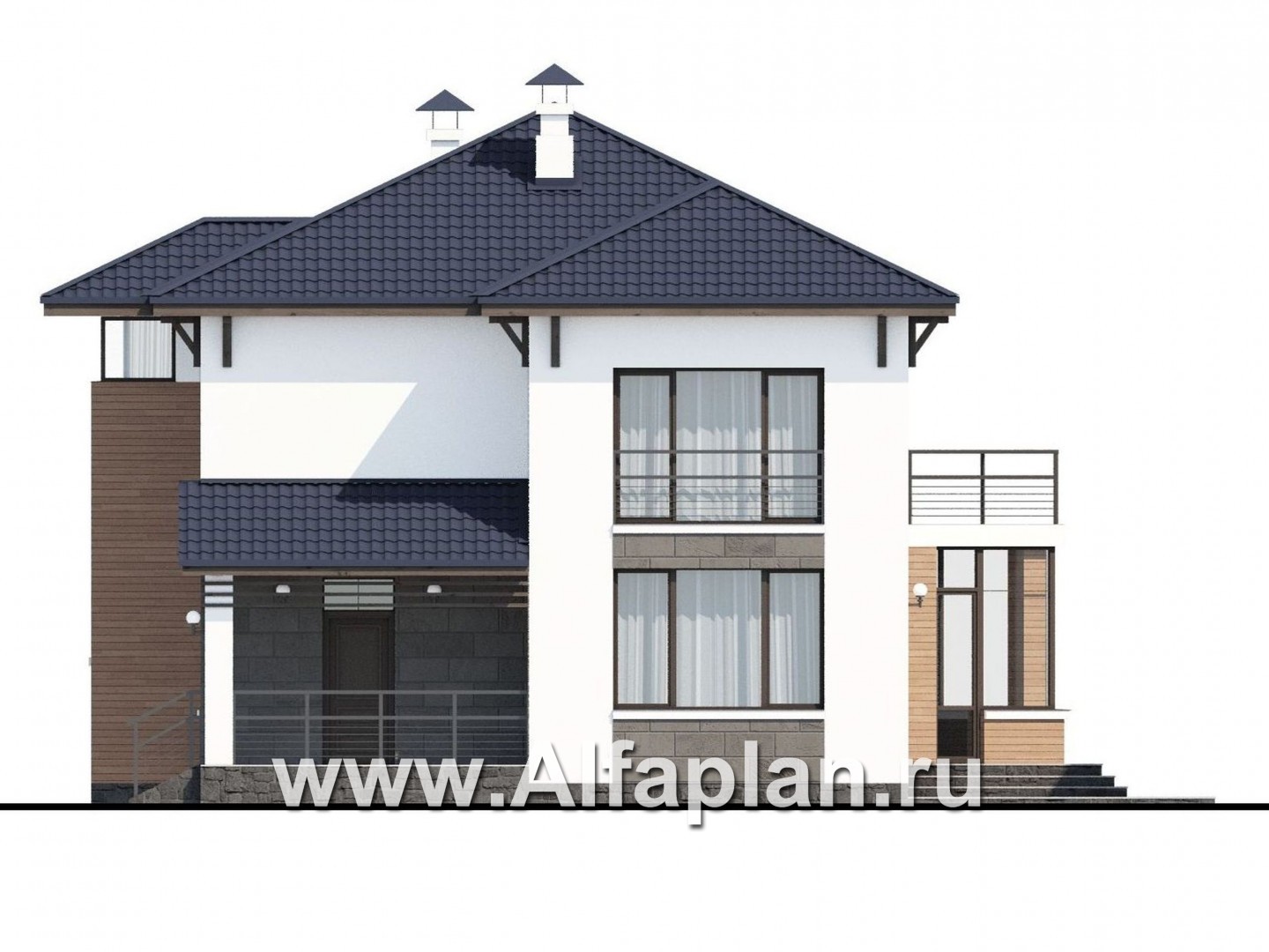 546B-S «Эликсир» - проект двухэтажного дома, с кухней в эркере, с террасой, в современном стиле