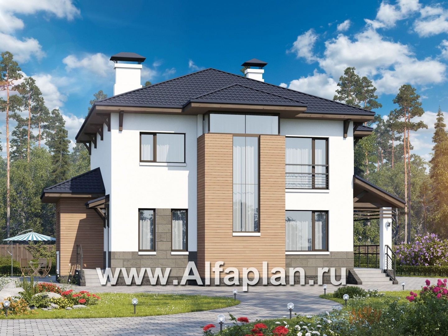 «Эликсир» - проект двухэтажного дома, с кухней в эркере, с террасой, в современном стиле - технические характеристики