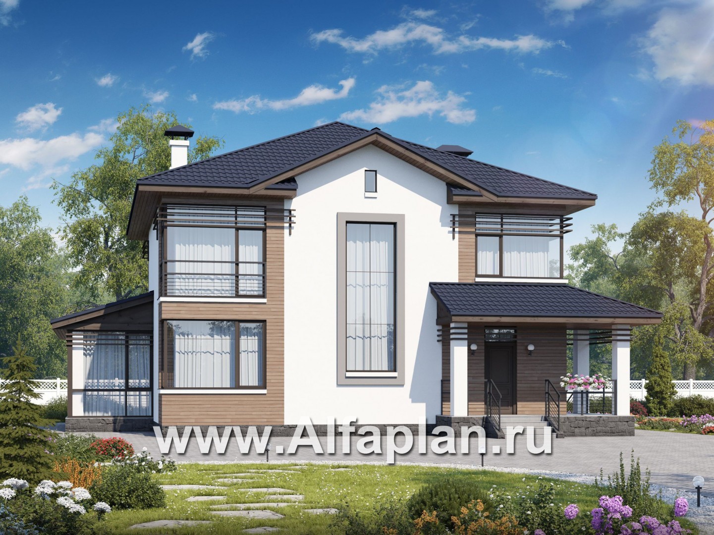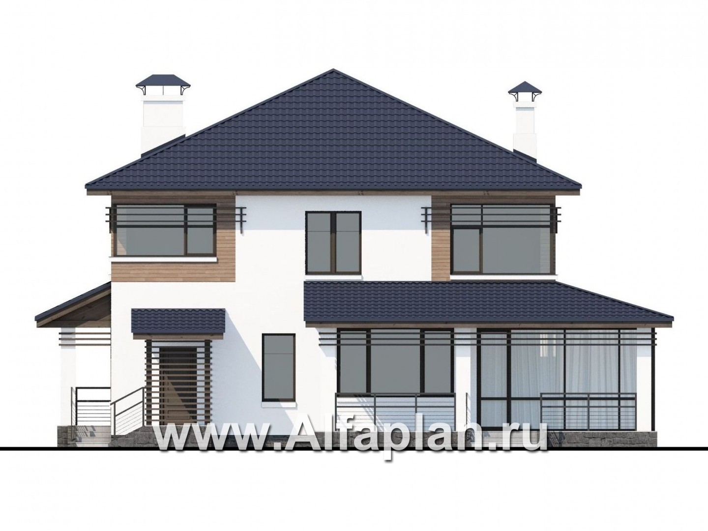 553A-S «Рассвет»- проект двухэтажного дома с террасой, мастер спальня, в современном стиле