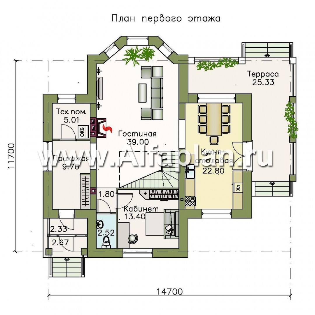 Габаритные размеры дома без крылец 12.7 м x 13.5 м