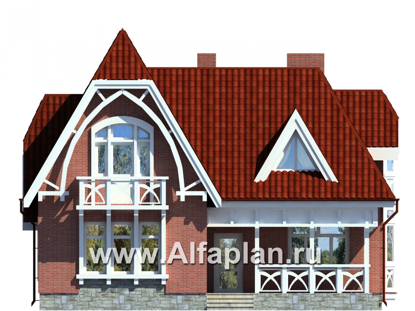 K-012 Проект коттеджа с мансардой, планировка с кабинетом и эркером, дачный дом