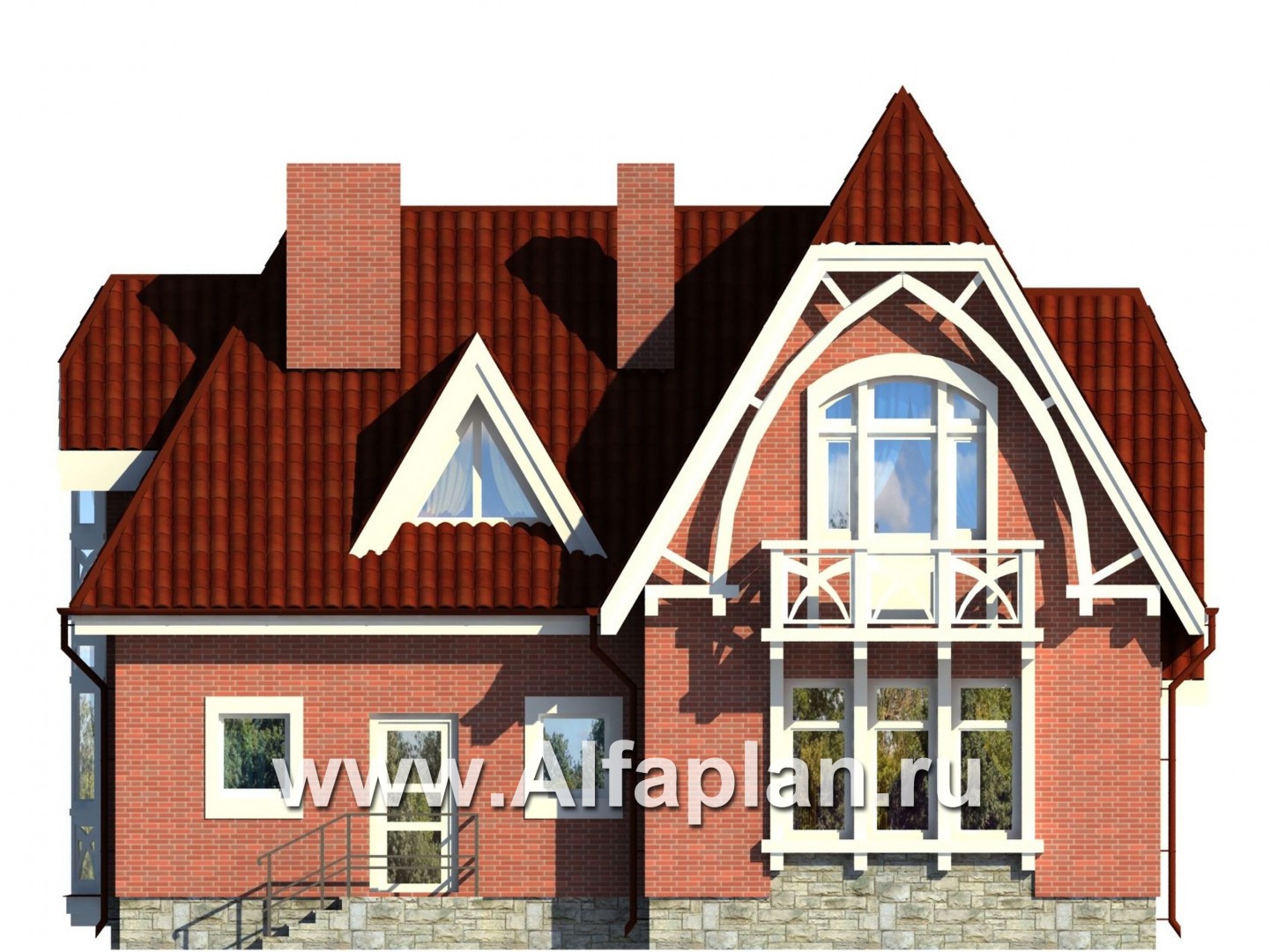 Проект коттеджа с мансардой, планировка с кабинетом и эркером, дачный дом
