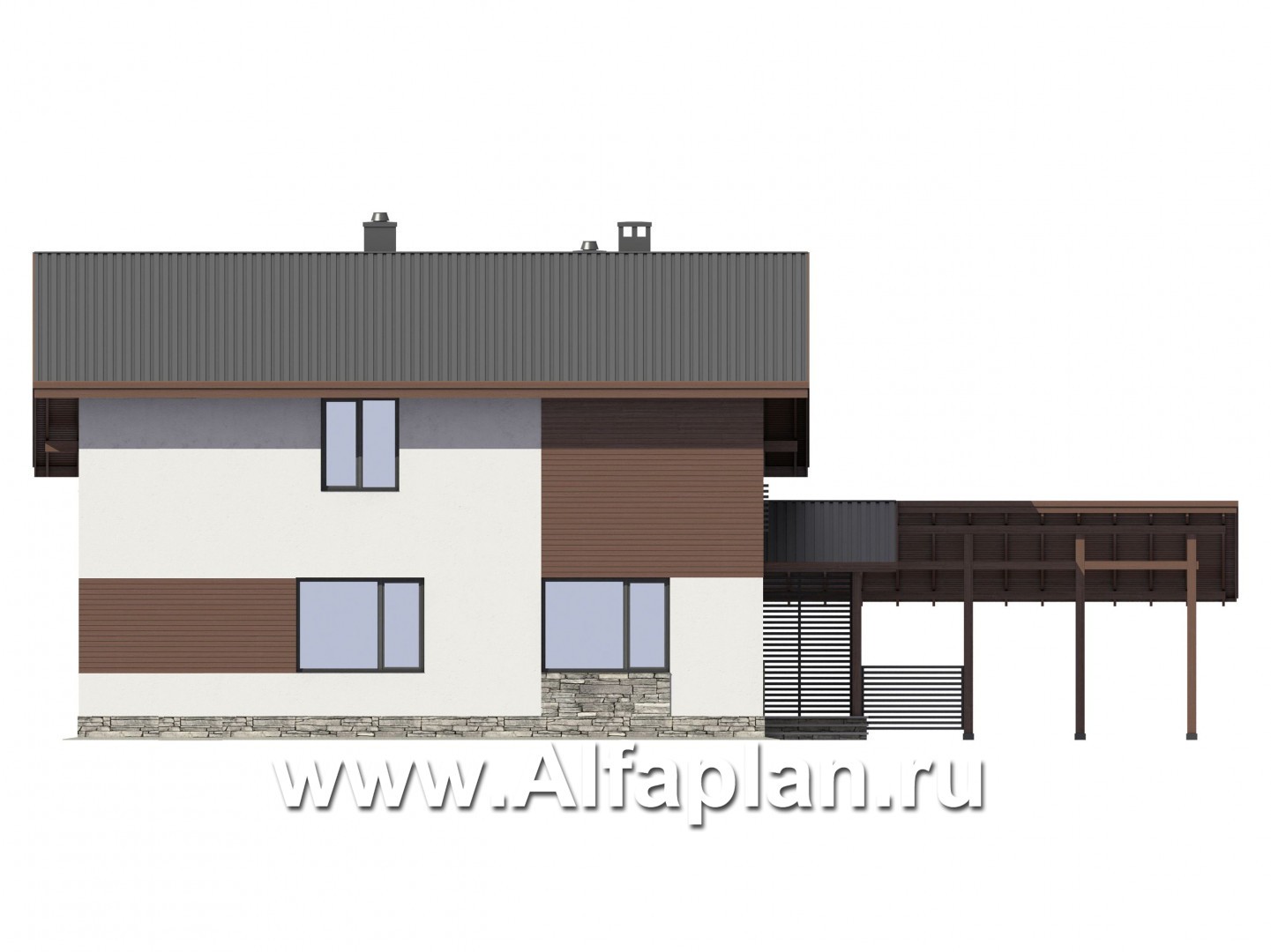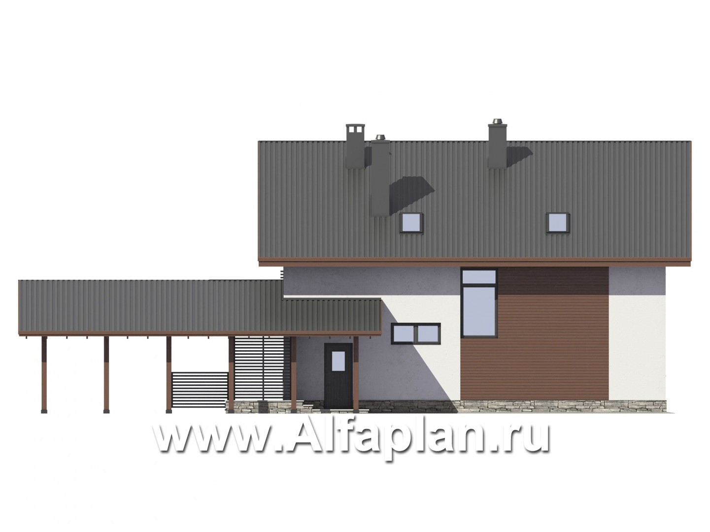 Проект двухэтажного дома, с навесом на 1 авто, в скандинавском стиле