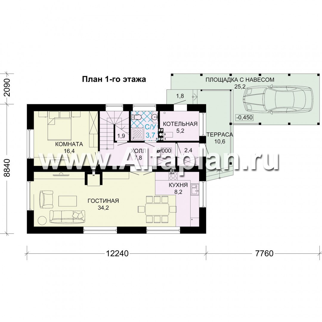 G101a Проект двухэтажного дома, с навесом на 1 авто, в скандинавском стиле