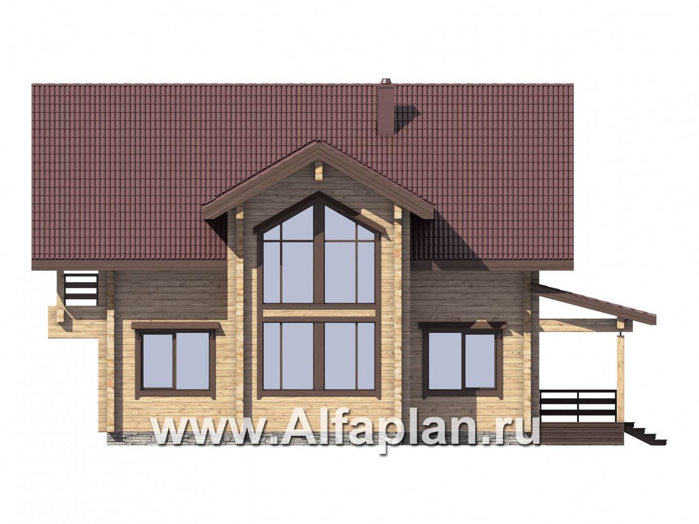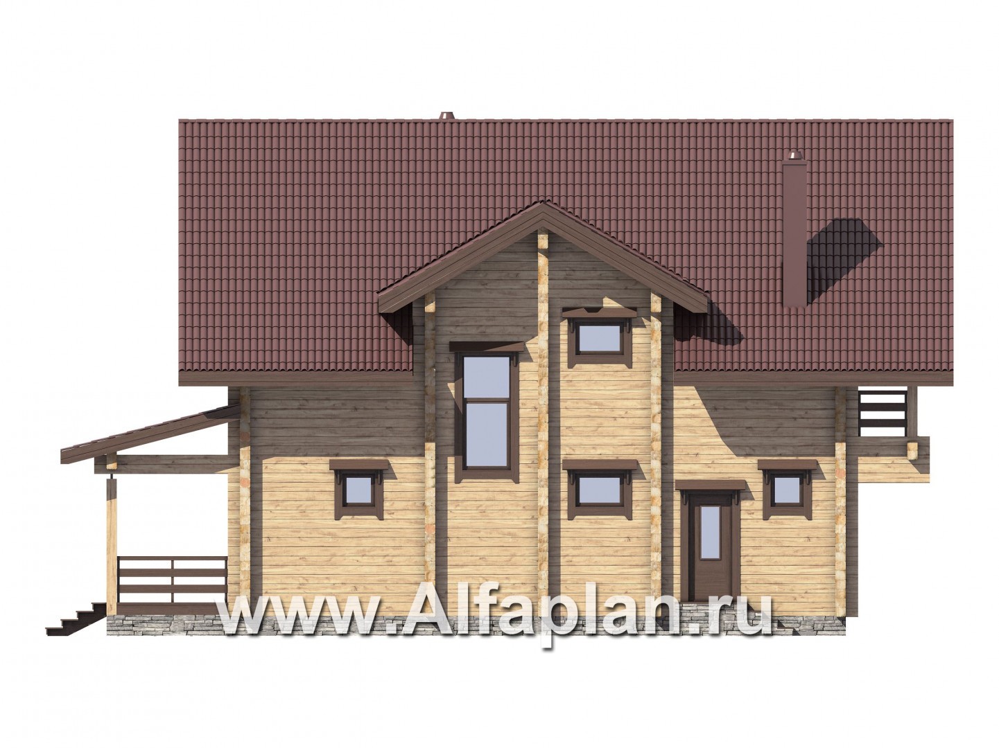 G111 Проект дома с мансардой, из бруса, планировка с террасой и кабинетом на 1 эт, с эркером