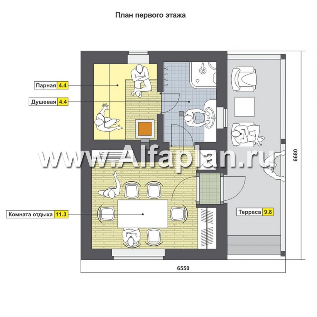 Проект каркасной бани с террасой - технические характеристики
