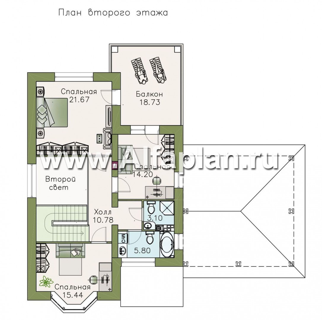 452E-S «Галерея»- проект двухэтажного дома с эркером и с террасой, планировка со вторым светом и галереей на 2 этаже, навес на 2 авто