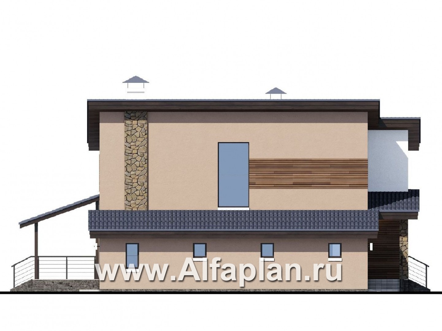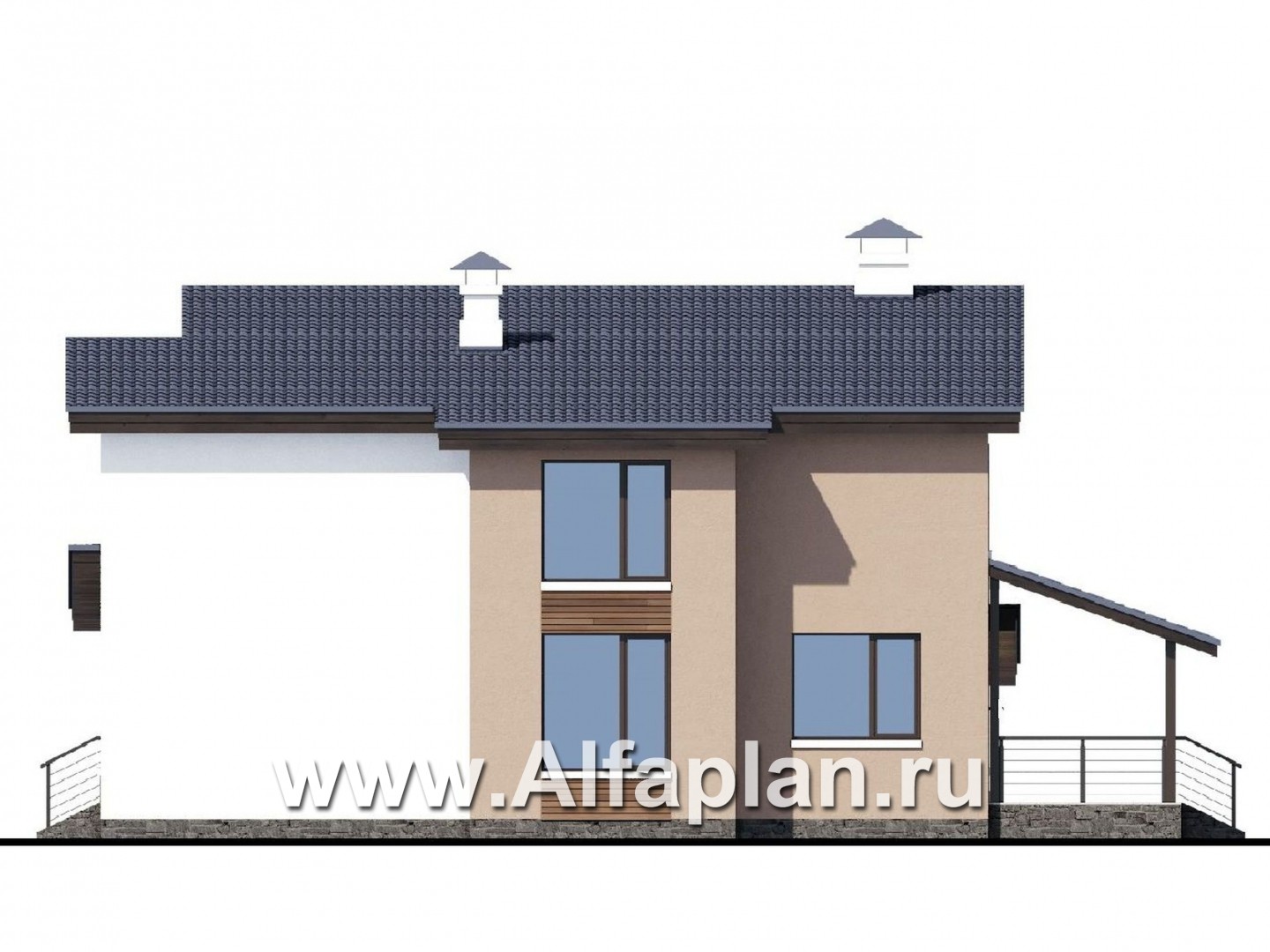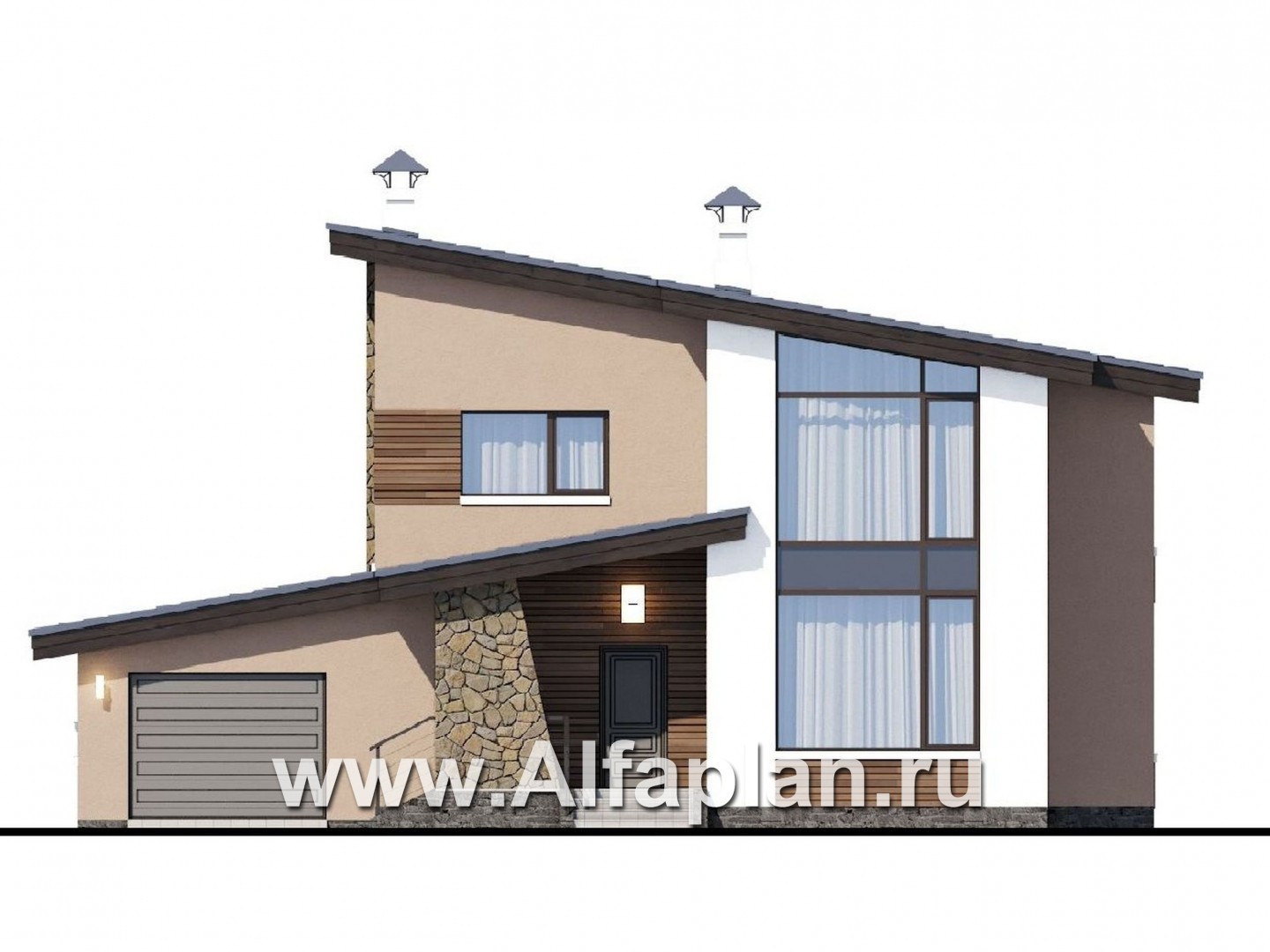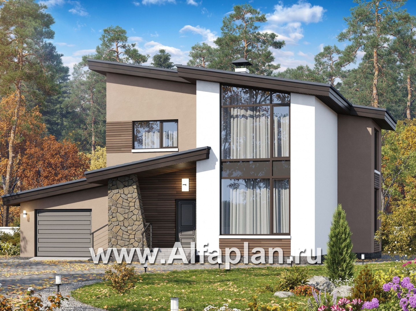 «Борей» - проект двухэтажного дома с террасой и гаражом на 1 авто, планировка с кабинетом на 1 эт, в современном стиле